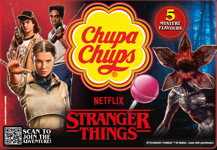 Chupa Chups lancia formati dedicati e 5 nuovi gusti in edizione limitata ispirati all’iconico universo di Stranger Things. Una collaborazione potente che unisce uno dei più grandi fenomeni della cultura pop alla creatività giocosa e ricca di gusto che solo Chupa Chups sa offrire.